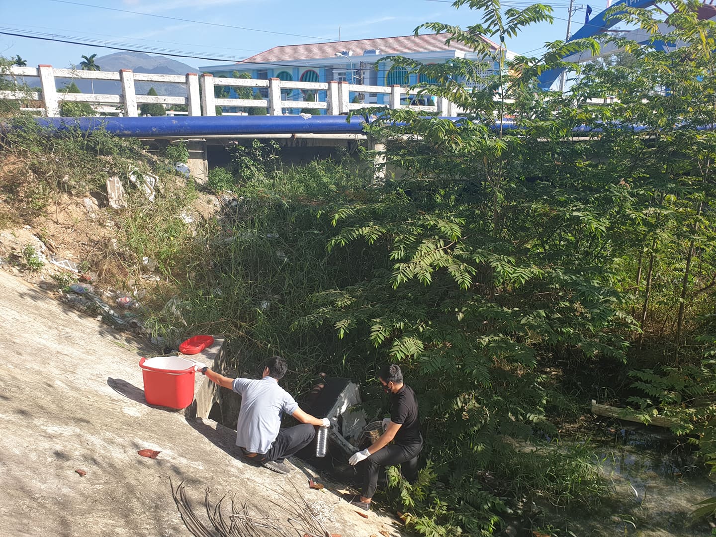 Kiểm tra giải quyết tình hình ô nhiễm môi trường tại khu vực Cầu Ông Bộ giáp ranh thành phố Nha Trang và huyện Diên Khánh, ngày 09/1/2020. (Ảnh: Hương - CCBVMT)