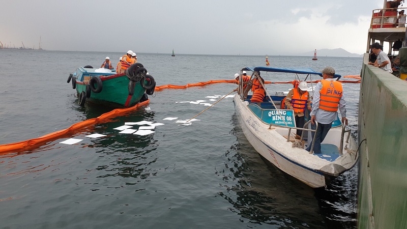 Diễn tạo ứng phó sự cố tràn dầu cấp cơ sở tại Cảng Xi măng Hà Tiên tại Cam Ranh (Ảnh: Đình Tường)