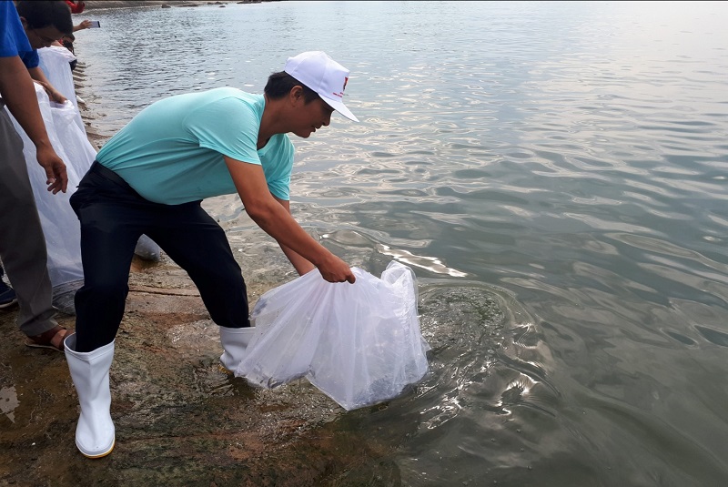 Phó Chi cục trưởng Chi cục Bảo vệ Môi trường tham gia thả cá tái tạo nguồn lợi thủy