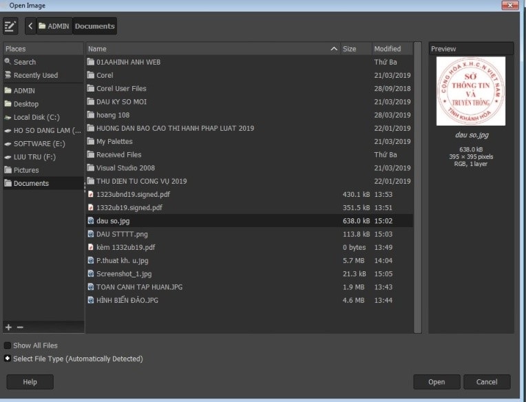 Ví dụ: Chúng ta có dấu Sở Thông tin và Truyền thông có phần mở rộng là .JPG