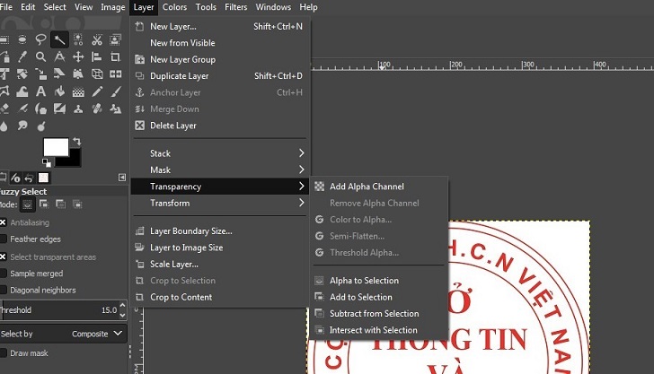 B3. Chọn trên Menu: Layer à Transparency àAdd Alpha Channel