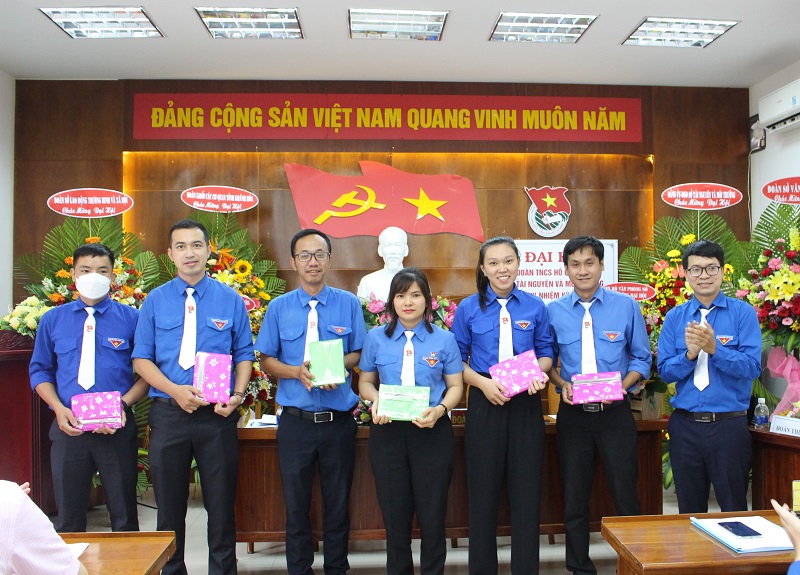 Đ/c Lê Xuân Tiến – Bí thư Đoàn cơ sở Sở TNMT tặng quà Ban Chấp hành nhiệm kỳ 2017-2022. (Ảnh: Nhung-TTCNTT)