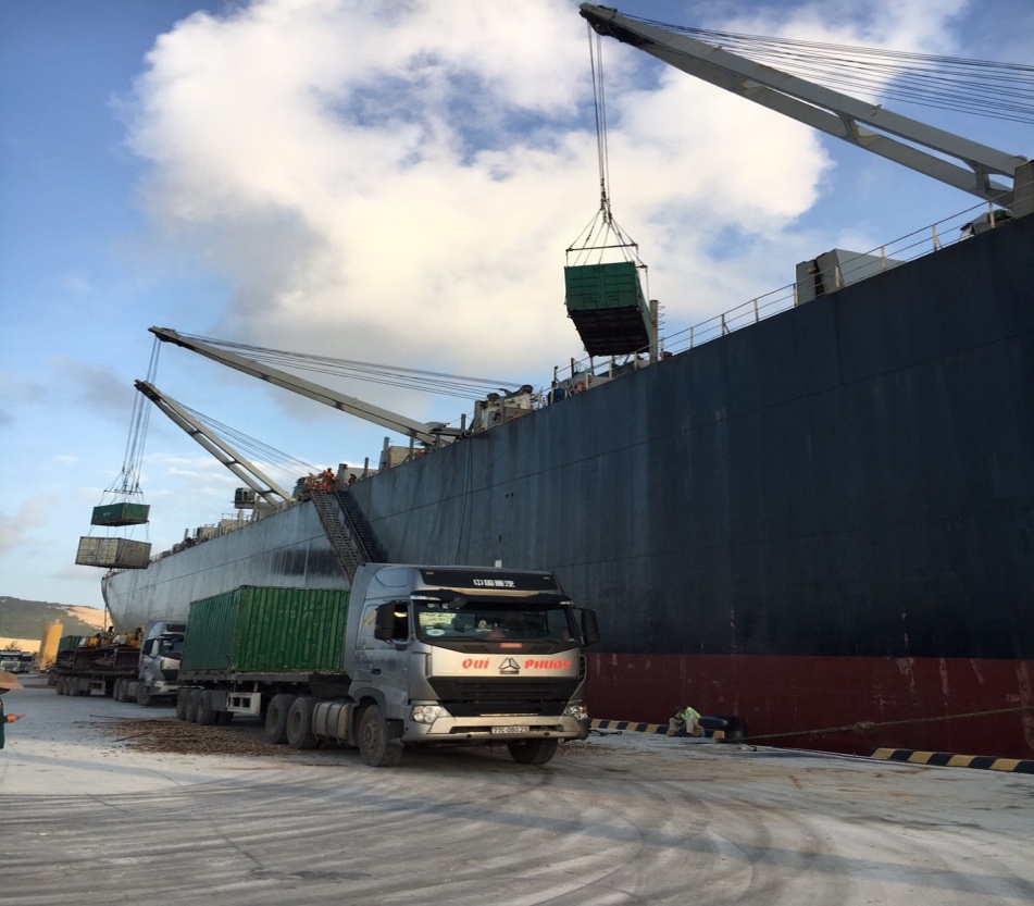 Tàu đang làm hàng tại Cảng Tổng hợp bắc Vân Phong, một trong các cảng tiếp nhận tàu tải trọng lớn tại khu vực vịnh Vân Phong. (Ảnh: Tường-CCBHĐ)