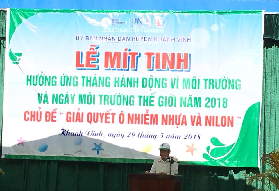 Ngày 21/5/2018, UBND huyện Khánh Vĩnh ban hành Kế hoạch số 1237/KH-UBND về việc tổ chức các hoạt động lễ mít tinh hưởng ứng Ngày Môi trường thế giới năm 2018 với chủ đề “Giải quyết ô nhiễm nhựa và nilon” nhằm tuyên truyền, vận động, kêu gọi mọi người cùng nhau thay đổi thói quen cuộc sống hàng ngày để giảm gánh nặng ô nhiễm chất thải nhựa tới môi trường tự nhiên và sức khoẻ của chúng ta.