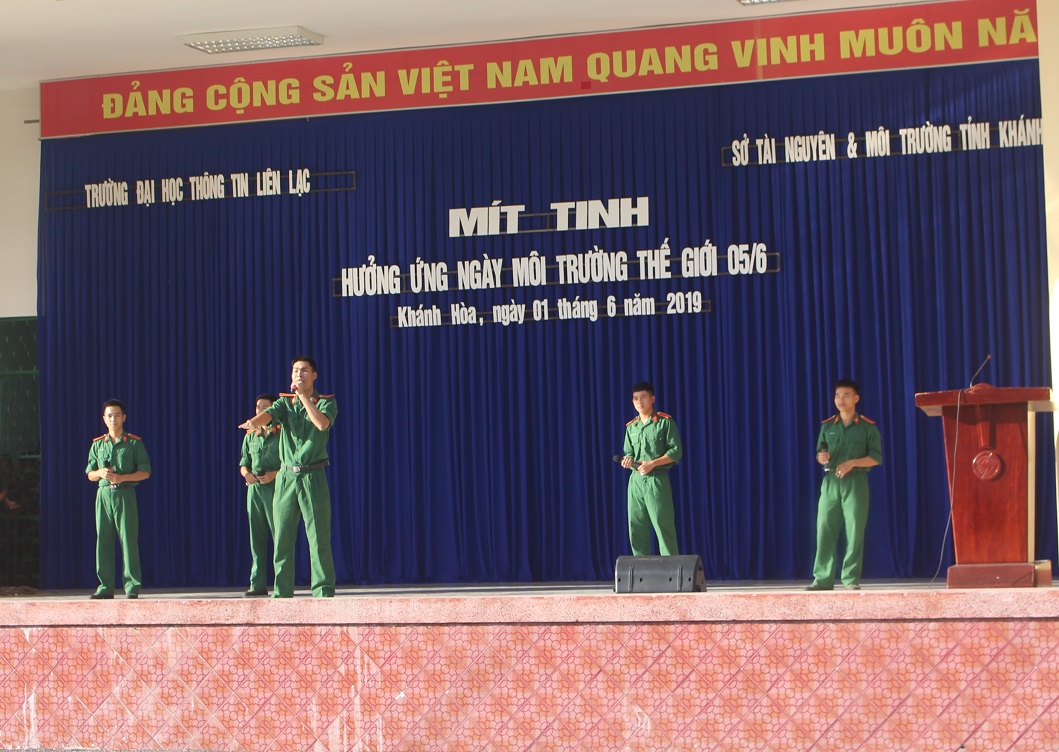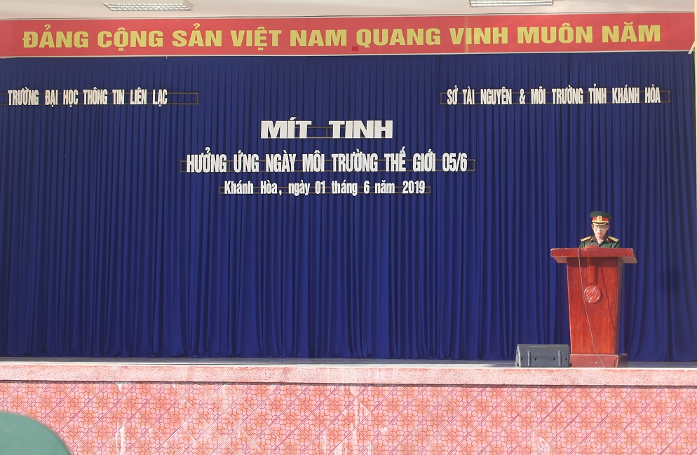 Ngày 01/06/2019, Sở Tài nguyên và Môi trường (TNMT) đã phối hợp với Trường Đại học thông tin liên lạc tổ chức Mít tinh hưởng ứng ngày môi trường thế giới 05/6. Tham dự có Ông Nguyễn Sĩ Khánh – Phó chủ tịch UBND thành phố Nha Trang; Bà Nguyễn Thị Nguyệt Hà – Chi cục trưởng Chi cục Bảo vệ môi trường, Sở TNMT; Đại tá Nguyễn Bá Hải – Trường Đại học Thông tin liên lạc; Lãnh đạo UBND Phường Vĩnh Hải, Vĩnh Hòa, thành phố Nha Trang; Lãnh đạo chỉ huy Trường Đại học Thông tin liên lạc cùng hơn 700 quần chúng nhân dân, cán bộ, đoàn viên thuộc hai phường Vĩnh Hải, Vĩnh Hòa, Đại học thông tin liên lạc và Sở TNMT tỉnh Khánh Hòa.