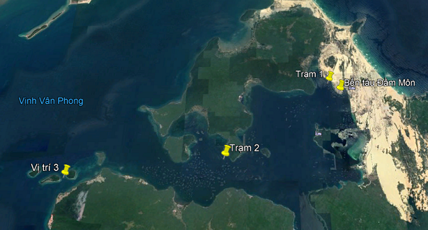 Vị trí 1 (Trạm 1): Tại khu vực nuôi trồng thủy sản của người dân cách cảng Đầm Môn 0,6 km về phía Đông, tọa độ: 12040’24,0”Bắc, 109023’52,2” Đông.