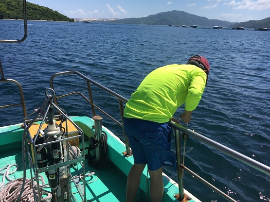 Hình 2- lấy mẫu Tảo và nước biển gần khu vực nuôi trồng thủy sản của Công Ty TNHH Ngọc Trai Sài gòn