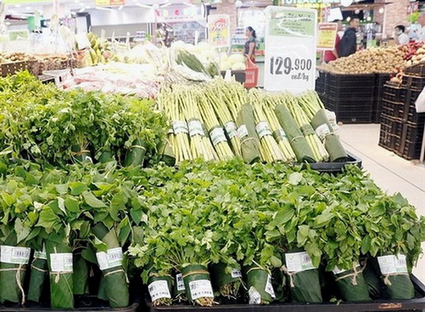 Nhiều siêu thị đã sử dụng lá chuối để gói rau xanh (ảnh: theo Moitruong24h.vn)