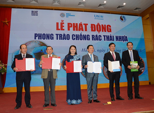 Thực hiện cam kết của Thủ tướng Chính phủ và phát động của Liên hợp quốc về “Giải quyết ô nhiễm nhựa và ni lông”, năm 2018 Bộ Tài nguyên và Môi trường đã phát động phong trào “Chống rác thải nhựa” với sự tham gia của các Bộ, ngành, các tổ chức chính trị - xã hội, tổ chức quốc tế và cam kết của các hiệp hội doanh nghiệp, các siêu thị, Trung tâm thương mại trong việc cắt giảm các sản phẩm nhựa, túi ni - lông sử dụng một lần. Sự kiện nhằm kêu gọi các cấp, các ngành, các tổ chức chính trị - xã hội và từng người dân, bằng những hành động thiết thực hãy thay đổi hành vi, thói quen sử dụng túi ni lông, sản phẩm nhựa khó phân hủy, sử dụng một lần ngay hôm nay và ngay bây giờ. Tại sự kiện này, đại diện Lãnh đạo các Bộ, ban, ngành; các tổ chức chính trị - xã hội; các hiệp hội, doanh nghiệp sản xuất thương mại có sử dụng vật liệu nhựa, các doanh nghiệp phân phối, bán lẻ hàng hóa; đại diện các tổ chức quốc tế, đại sứ quán đã ký cam kết tham gia phong trào “Chống rác thải nhựa”.