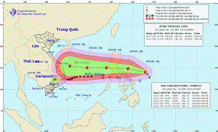 Đường đi của Bão số 12. (Nguồn: Trung tâm Khí tượng thủy văn quốc gia)