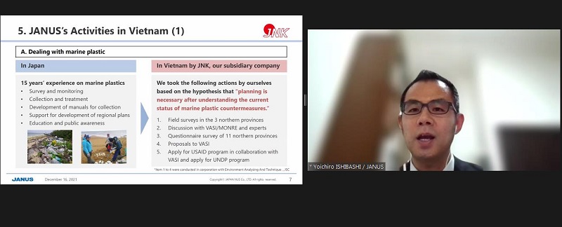 Ngày 16/12/2021,  Bộ Tài nguyên và Môi trường phối hợp Bộ Môi trường Nhật bản tổ chức Hội thảo về nỗ lực trong liên kết công – tư nhằm hướng tới sự chuyển dịch sang nền kinh tế tuần hoàn bao gồm các giải pháp đối với rác thải nhựa đại dương. Đây là Hội thảo được tổ chức trong khuôn khổ “Tuần lễ Môi trường Nhật Bản – Việt Nam”. Tham dự Hội thảo gồm các đại biểu đại diện cho Bộ Môi trường Nhật bản; đại diện Tổng cục Biển và Hải đảo Việt Nam; đại diện Sở Tài nguyên và Môi trường 28 tỉnh, thành phố trực thuộc trung ương có biển; đại diện một số doanh nghiệp, tổ chức liên quan.