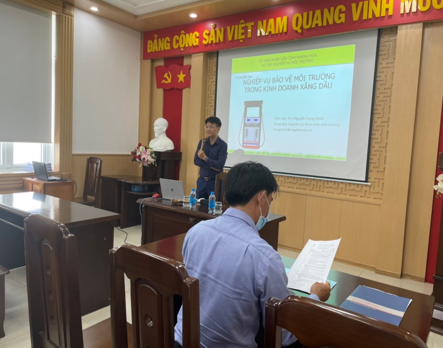 Nhằm đáp ứng nhu cầu đào tạo nghiệp vụ bảo vệ môi trường của các cơ sở kinh doanh xăng dầu trên địa bàn tỉnh Khánh Hòa theo quy định của Thông tư số 43/2014/TT-BTNMT ngày 29/7/2014 của Bộ Tài nguyên và Môi trường quy định về đào tạo nghiệp vụ bảo vệ môi trường trong kinh doanh xăng dầu, khí dầu mỏ hóa lỏng. Ngày 27/4/2021, Sở Tài Nguyên và Môi Trường tỉnh Khánh Hòa phối hợp với Trung Tâm Ứng Phó Sự Cố An Toàn Môi Trường khai giảng lớp đào tạo nghiệp vụ bảo vệ môi trường trong kinh doanh xăng dầu khóa 1 năm 2021 cho 104 học viên của Công ty TNHH Liên doanh Kho ngoại quan xăng dầu Vân Phong.