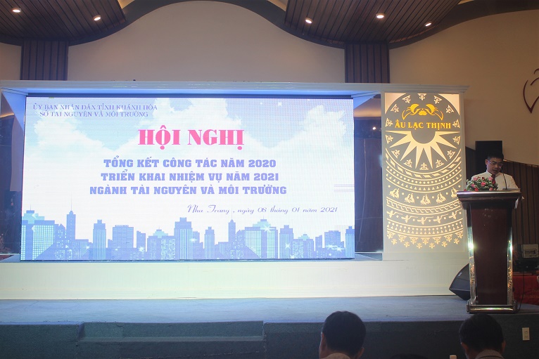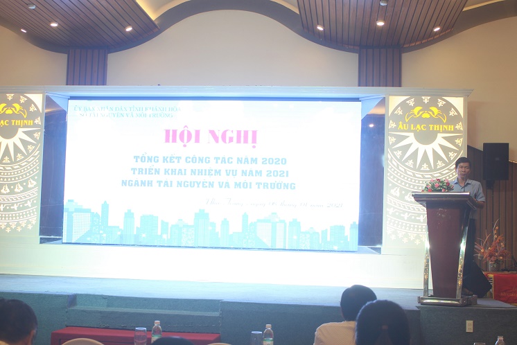 Ông Trần Xuân Tây – Phó Giám đốc Sở thông qua báo cáo tổng kết công tác năm 2020 và triển khai nhiệm vụ năm 2021 của ngành TNMT. (Ảnh: Nhung-TTCNTT)
