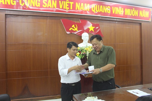 Ông Võ Tấn Thái - Giám đốc Sở TNMT giao Quyết định ủy quyền và con dấu ướt cho