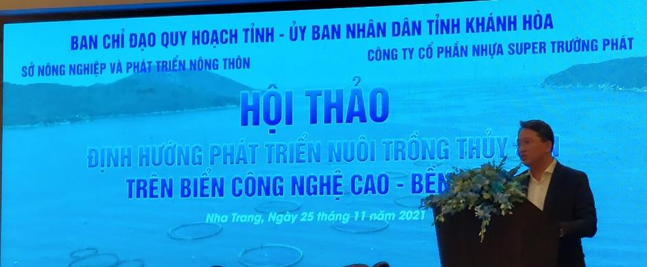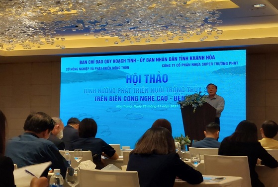 Ngày 25/11/2021, Ban Chỉ đạo Quy hoạch tỉnh - UBND tỉnh Khánh Hòa đã tổ chức Hội thảo định hướng phát triển nuôi trồng thủy sản trên biển công nghệ cao, bền vững. Tham dự Hội thảo gồm: ông Nguyễn Hải Ninh - Ủy viên Trung ương Đảng, Bí thư Tỉnh ủy; ông Nguyễn Khắc Toàn - Phó Bí thư Thường trực Tỉnh ủy, Chủ tịch HĐND tỉnh; ông Đinh Văn Thiệu - Phó Chủ tịch UBND tỉnh và các đại biểu đại diện cho các sở, ban, ngành; đại diện các viện nghiên cứu; đại diện các doanh nghiệp trong lĩnh vực nuôi trồng thủy sản.