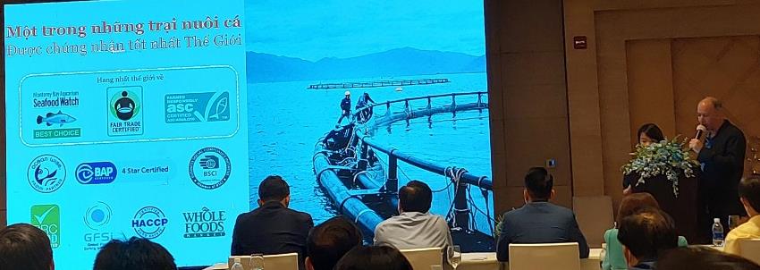 Đại diện Công ty TNHH Thủy sản Australis Việt Nam chia sẻ kinh nghiệm tại Hội thảo (Ảnh: Đình Tường)