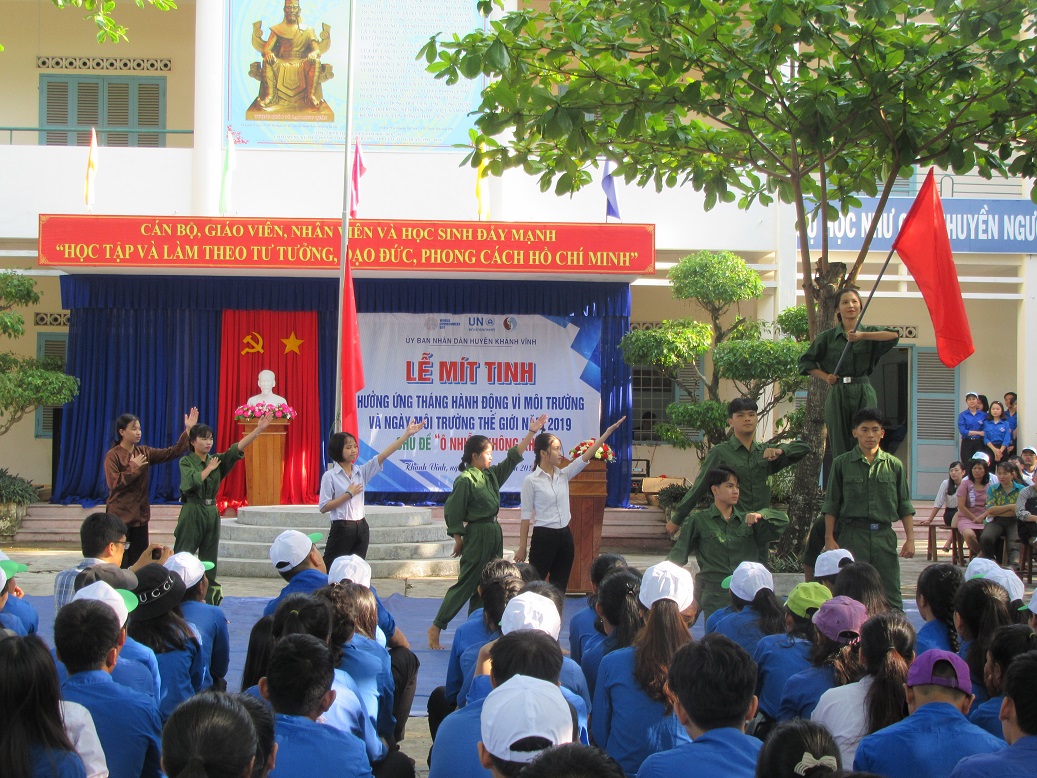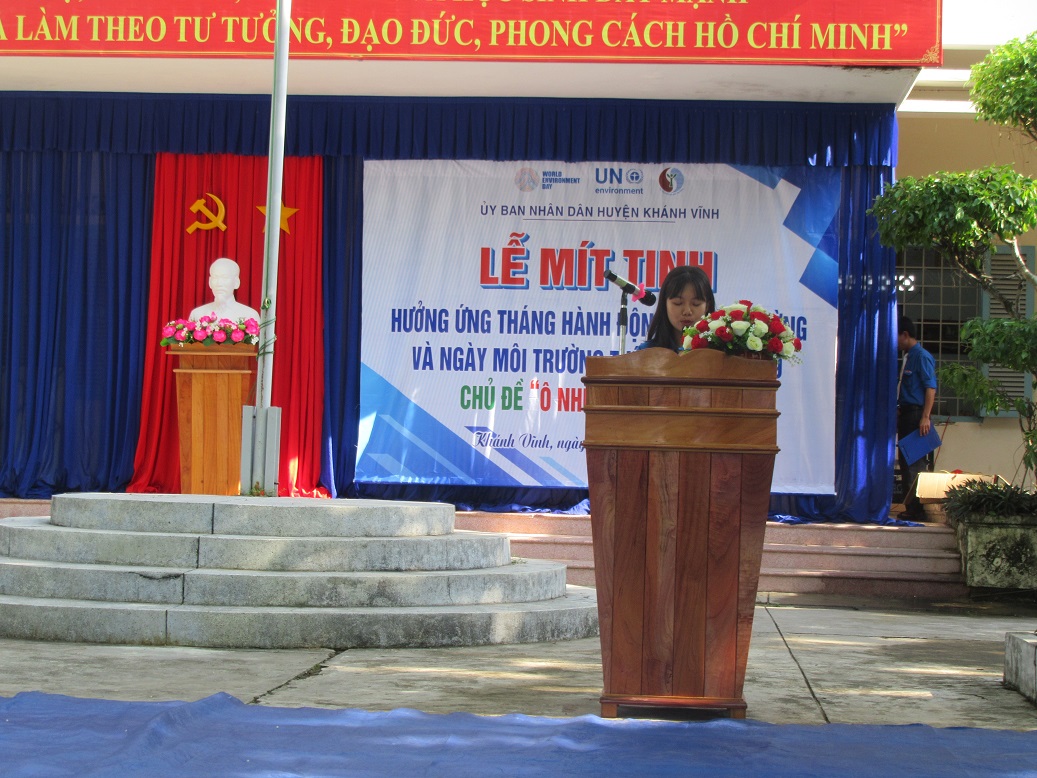 Ngày 22/5/2019 tại Trường PTTH Lạc Long Quân, UBND huyện Khánh Vĩnh tổ chức Lễ mittinh hưởng ứng tháng hành động vì môi trường và ngày Môi trường thế giới năm 2019. Về tham dự lễ Mít tinh có Ông Nguyễn Văn Thuận – Phó Chủ tịch UBND huyện Khánh Vĩnh; lãnh đạo các ban ngành, đoàn thể, UBND các xã, thị trấn cùng đông đảo cán bộ công chức các ban ngành đoàn thể và hơn 400 giáo viên, học sinh trường PTTH Lạc Long Quân tham gia.