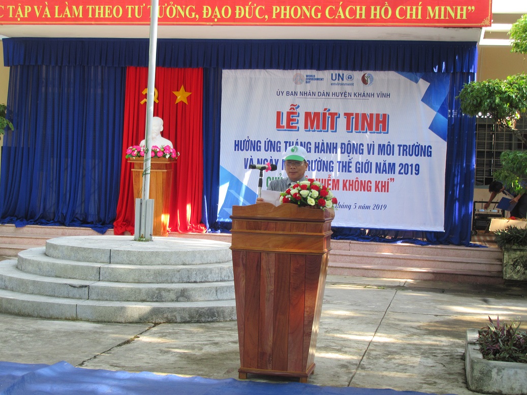 Ông Nguyễn Văn Thuận – Phó Chủ tịch UBND huyện Khánh Vĩnh phát biểu phát động các hoạt động hưởng ứng Tháng hành động vì môi trường và Ngày Môi trường thế giới năm 2019