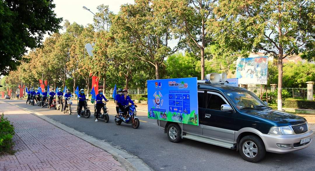 Đoàn viên thanh niên của thành phố Cam Ranh diễu hành cổ động tuyển truyền. (Ảnh: Vũ Ngọc Hà)