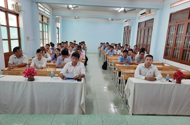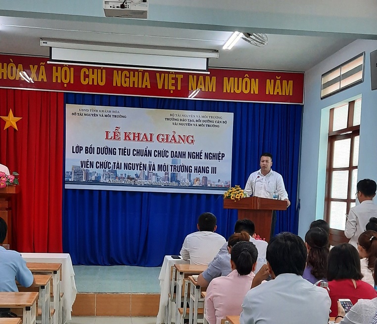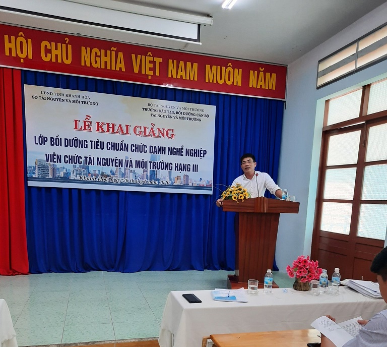 Sáng ngày 26/6/2020, Sở Tài nguyên và Môi trường (TNMT) tỉnh Khánh Hòa đã phối hợp Trường đào tạo, bồi dưỡng cán bộ TNMT tổ chức Lễ khai giảng bồi dưỡng chức danh nghề nghiệp ngành tài nguyên môi trường hạng III. Tham dự có: Ông Phạm Hải Bằng –Trưởng khoa đào tạo bồi dưỡng lãnh đạo quản lý Trường đào tạo, bồi dưỡng cán bộ TNMT; Ông Trần Xuân Tây – Chánh Văn phòng Sở TNMT và 74 viên chức ngành TNMT của các huyện, thị xã, thành phố trên địa bàn tỉnh.