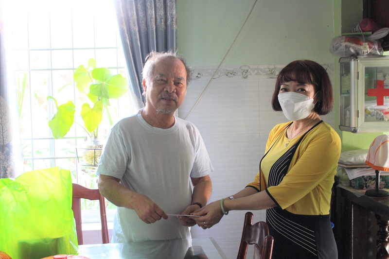 Đ/c Nguyễn Thị Lan tặng quà, chúc mừng năm mới đến Đ/c Mai Văn Thắng, nguyên Phó Giám đốc Sở Tài nguyên và Môi trường