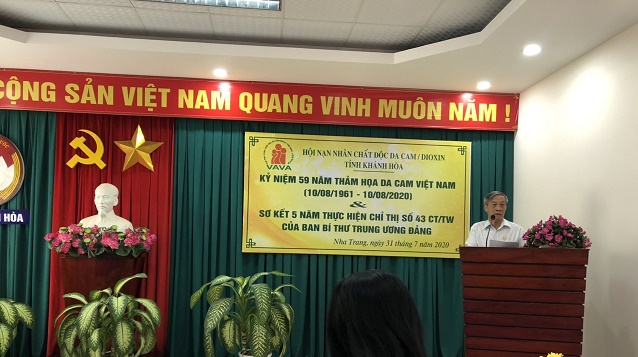 Sáng ngày 31/7/2020, Ban chấp hành Hội nạn nhân chất độc da cam/dioxin tỉnh Khánh Hoà đã tổ chức lễ Kỷ niệm 59 năm thảm hoạ da cam Việt Nam (10/08/1961-10/8/2020) và Sơ kết 5 năm thực hiện Chỉ thị 43 CT/TW ngày 14/5/2015 của Ban bí thư Trung Ương Đảng và Thông tri số 01-TT/TU ngày 30/9/2015 của Tỉnh uỷ Khánh Hoà về tăng cường sự lãnh đạo của Đảng đối với công tác giải quyết hậu quả chất độc hoá học do Mỹ sử dụng trong chiến tranh ở Việt Nam.