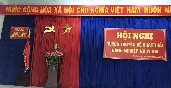 Sáng ngày 20/9/2018 tại UBND phường Ninh Giang đã diễn ra lớp tuyên truyền về chất thải nông nghiệp nguy hại; thành phần là đại diện các cơ quan, ban, ngành, đoàn thể của phường, các hộ sản xuất nông nghiệp, số lượng khoảng 200 người. Tại buổi tuyên truyền, đã hướng dẫn cách thức thu gom, phân loại chất thải nông nghiệp nguy hại và vận động người dân ký cam kết thực hiện theo mô hình đã xây dựng, đưa nội dung cam kết vào quy ước, hương ước của Tổ dân phố để thực hiện.