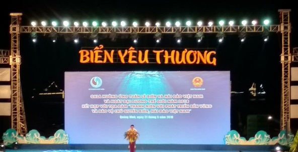 Bộ trưởng Bộ Tài nguyên và Môi trường Trần Hồng Hà phát biểu khai mạc Gala hưởng ứng Tuần lễ Biển, hải đảo Việt Nam và hưởng ứng ngày Đại dương Thế giới năm 2018 tại Quảng Ninh  (Ảnh: Đình Tường)
