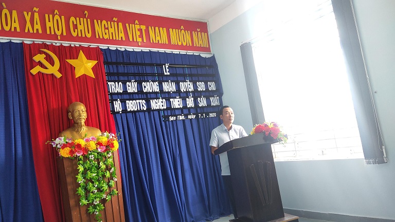 Đây là đợt trao Giấy chứng nhận lần đầu cho các hộ ĐBDTTS nghèo thiếu đất sản xuất được giao đất tại các xã trên. Đợt này, tại xã Khánh Phú có 78 hộ được giao đất với diện tích 42,56 ha, xã Sơn Thái có 45 hộ được giao đất với diện tích 36,03 ha, xã Giang Ly có 39 hộ được giao đất với diện tích 21,80ha, xã Khánh Thượng có 16 hộ được giao đất với diện tích 10,04 ha.